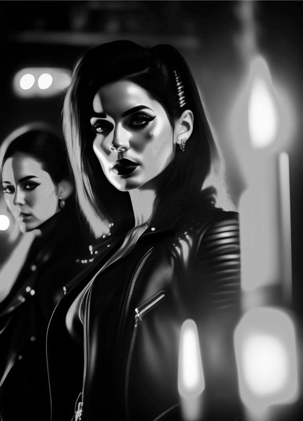 На афишной тумбе висел плакат с портретами двух девушек, одетых в чёрные кожаные куртки, прислонившихся друг к другу спинами и державшими странного вида музыкальные инструменты в своих руках. Музыкальные инструменты были похожи на средневековые лютни с плоскими корпусами, к которым шли провода.