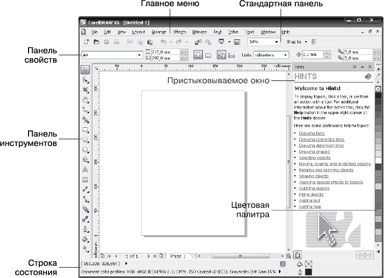 Прежде чем приступить к подробному описанию возможностей CorelDRAW X5, мы рассмотрим основные элементы интерфейса программы и введем некоторые важные понятия.