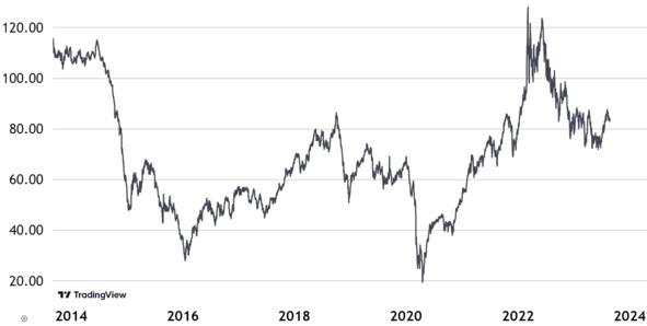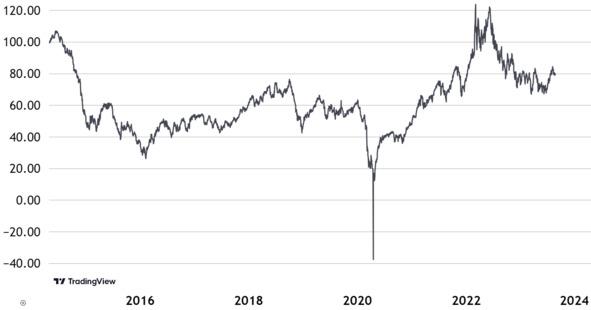 Если смотреть на американскую нефть WTI, аналог Brent, то в апреле 2020 года фьючерсы на нефть ушли в отрицательную зону.