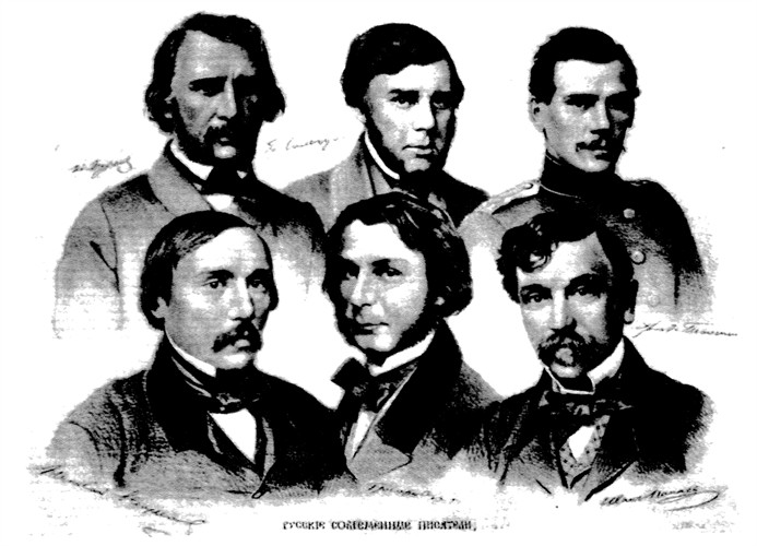 Нижний ряд: П. А. Некрасов, Д. В. Григорович, И. И. Панаев