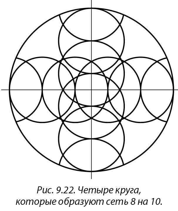 Тот показал мне гениальный способ построения этого рисунка без замеров и расчетов. Вам нужны лишь линейка и циркуль. Он сам показал мне, как это делается, сказав, что данный метод сбережет массу времени (см. инструкции к рис. 9.15 под ним).