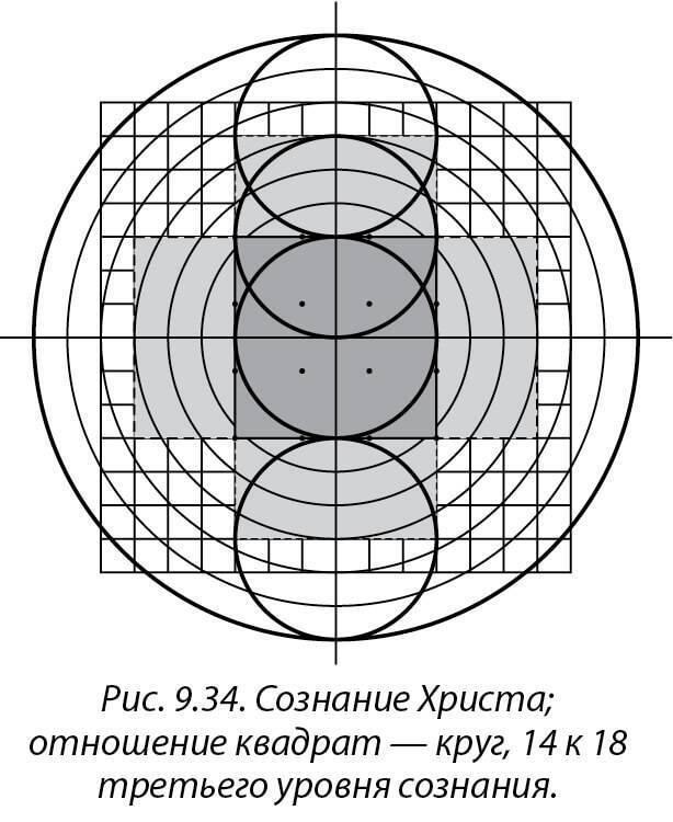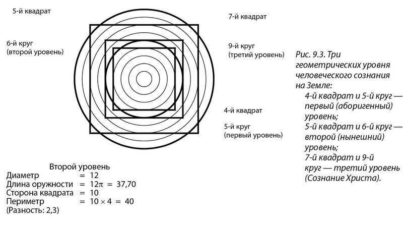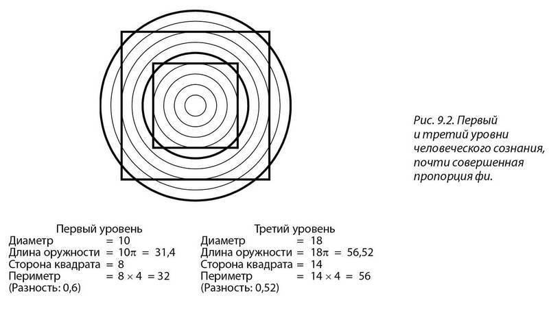 Для определения уровня сознания «нечеловеческих» форм жизни, таких как животные, насекомые и внеземные существа, применяются другие пропорции, всегда выводимые из куба, но в случае с человеком – это круг и квадрат. Сравнив, что больше – квадрат или круг, описанные вокруг тела, и точно подсчитав насколько, вы можете определить, как эти формы жизни интерпретируют Реальность и на каком уровне сознания они находятся. Есть, правда, и более быстрые способы определения, но данный способ фундаментален для самого существования.