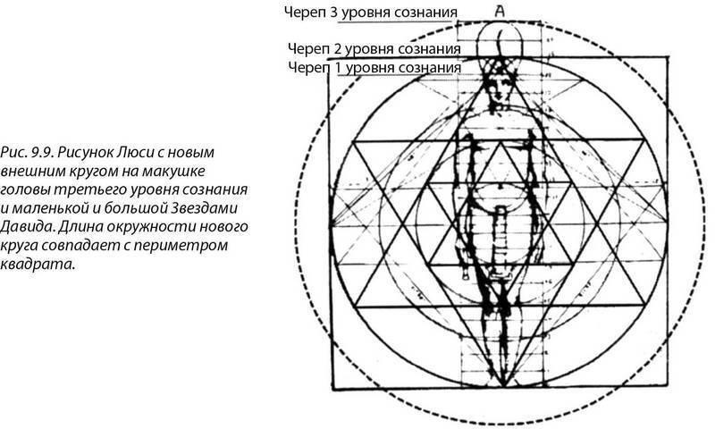 Это был тонкий подход, подобный тому, как в каноне человека, в верхней части своего рисунка, Леонардо сделал надпись в зеркальном отражении, чтобы вам пришлось держать зеркало для ее прочтения. Точно так же исходный рисунок Люси – это мужской аспект, а его женской составляющей является зеркальное отражение. Это как бы небольшая игра по сокрытию того, что вы не хотите сообщать внешнему миру. Словно внезапно прозрев, я и впрямь стал понимать, что наш уровень сознания действительно дисгармоничный, и египтяне тоже это знали. С той поры я стал намного больше времени проводить за изучением рисунков Люси.