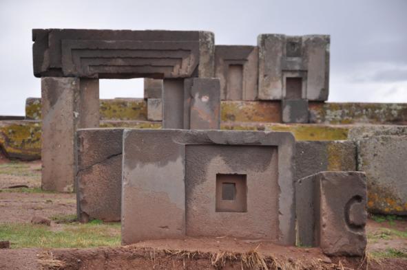 Это место, Тиуанако в Боливии и его части: пирамиды Акапана, Каласасайя, Пума-Пунку, статуи и храмы совершено уникальны. Не в пирамидах Гизы, а именно здесь в Пума-Пунку впервые в мире применена унификация, стандартизация. Однако сделаны эти блоки не из бетона, а из камня. Все это описано в книге автора [14].