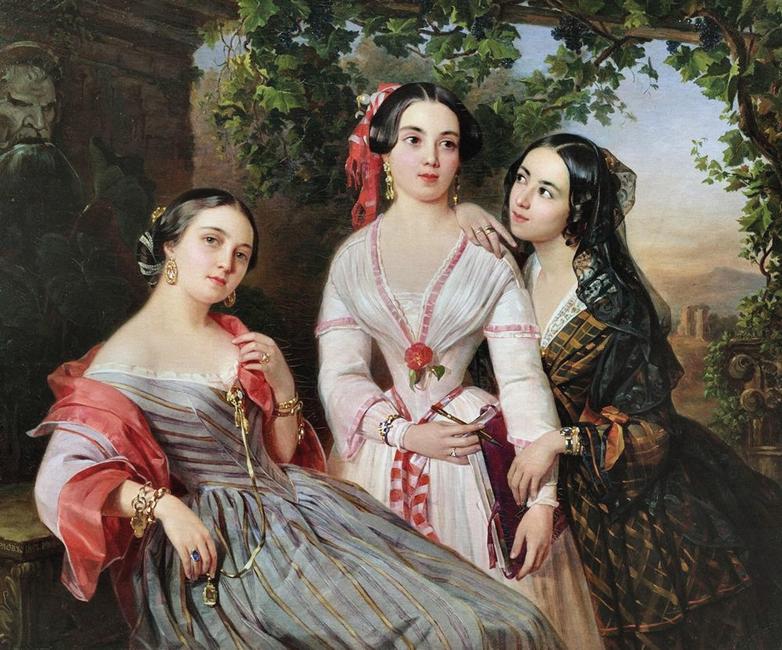 Пимен Орлов. «Портрет сестер графини Елизаветы Васильевны Салиас де Турнемир, Софьи Васильевны Сухово-Кобылиной и Евдокии Васильевны Сухово-Кобылиной». 1847