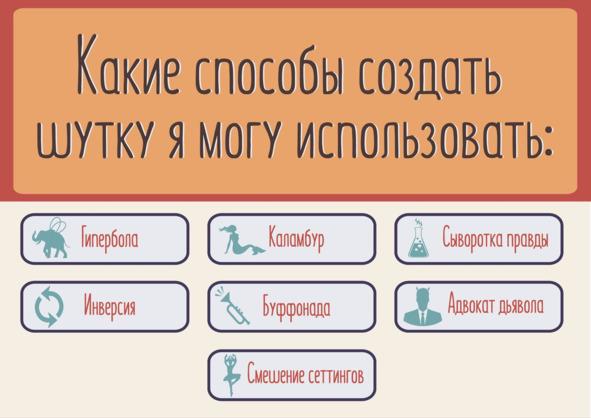 Эта простая наводка экономит массу времени, а иногда даже спасает заплутавшего впотьмах своих страхов и опасений новичка. От вам не требуется слишком многого — соберите несколько шуток (или того, что вы считаете смешным) и вперед. Остальное станет ясно позже.