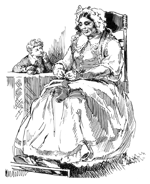 Моя мать в волнении встала с кресла и отступила за его спинку, в угол. Мисс Бетси медленно и дотошно обозревала комнату, начав со стены против окна, и вращала глазами, как голова сарацина на голландских часах, пока взгляд ее не остановился на моей матери. Тогда, как человек, привыкший повелевать, она нахмурилась и жестом предложила моей матери пойти и открыть дверь. Мать повиновалась.