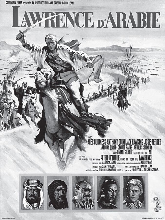 Многие знают фильм «Лоуренс Аравийский», снятый в 1962 году. Он основан на реальных событиях времен Первой мировой войны. Главный герой фильма – Томас Эдвард Лоуренс, офицер британской армии, направленный в Саудовскую Аравию в разгар Первой мировой. Он сражается с Османской империей на стороне арабов, за выдающиеся ум и храбрость становится героем среди арабов. Благодаря поддержке Великобритании, которую символизирует Лоуренс, арабские повстанцы побеждают османов. То, что на постере к фильму Лоуренс находится на переднем плане, а арабские всадники следуют за ним, символизирует роль Британии в этом регионе.