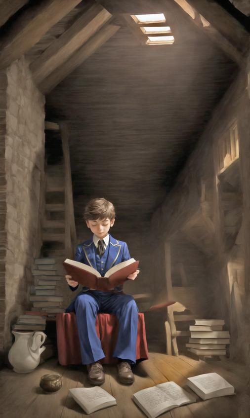 Вернувшись на чердак, он снова погрузился в книгу. На этот раз его ждала морская баталия. Он читал о том, как два флота сошлись в смертельной схватке, как ядра свистели в воздухе, как корабли кренились под натиском волн и огня. И Альберт был там, в самом центре этого хаоса.