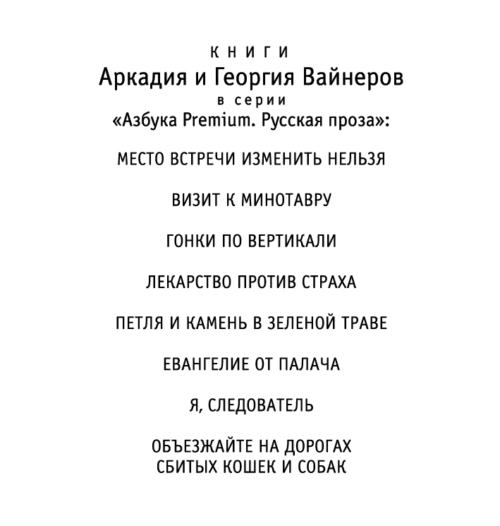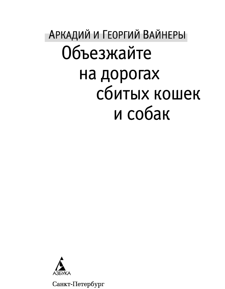 Объезжайте на дорогах сбитых кошек и собак : повести / Аркадий и Георгий Вайнеры. — СПб. : Азбука, Азбука-Аттикус, 2022. — (Азбука Premium. Русская проза).