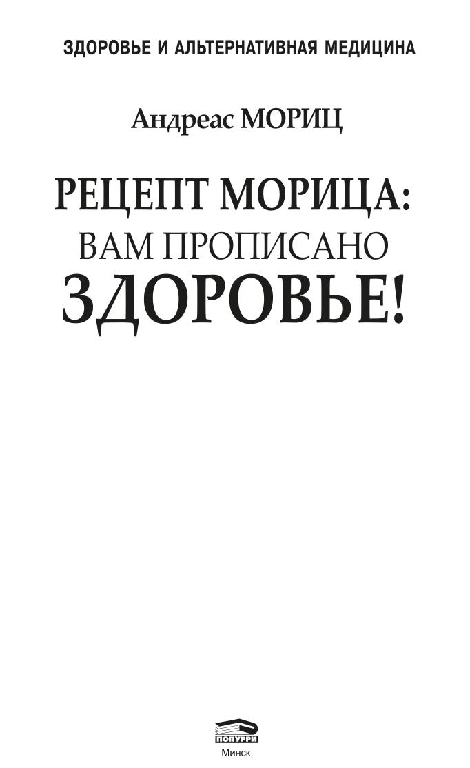 Рецепт Морица: вам прописано здоровье! / А. Мориц; пер. с англ. К. В. Добрева. — Минск : «Попурри», 2011.