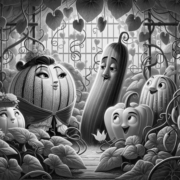 В один из солнечных дней в разговор вмешался кто-то еще. Оказалось, что в теплице появился еще один незнакомец — Китайский Огурец. Он рос, набирался зрелости и мотал себе на ус. Уж очень заинтересовала его Барыня. Он всеми фибрами души тянулся к ней. Ее аромат и бесконечные расхваливания себя будоражили воображение Китайского Огурца.