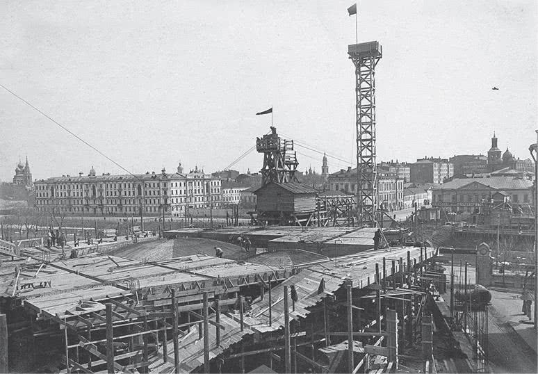 Строительство театра и клуба. Сзади справа Большой Каменный мост