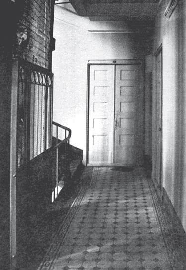 Весь корпус пронизан светлыми коридорами, из которых идут маленькие лестницы вверх и вниз, квартирные ячейки. Каждая квартира имеет, таким образом, двухсветную высокую комнату дневного пребывания и кабины для сна полуэтажом выше, не изолированные от общей квартирной кубатуры.