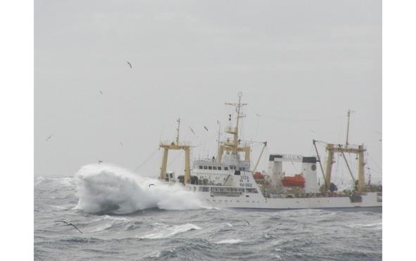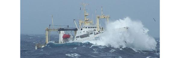 Уважаемые читатели! Для непосвящённых хочу пояснить, что на фото Вы видите промысловое судно, которое занято ловом рыбы. Оно оповестило всех нас об этом, подняв на правом ноке рея средней мачты сигнал — «Иду с тралом» (это два конуса вершинами вместе). Эти волны, которые разбиваются о форштевень судна, рыбаков абсолютно не тревожат. Был бы силён главный двигатель, чтобы иметь достаточную скорость траления. А остальное всё не важно. Так что для кого-то это романтика, а для рыбаков — обычный рабочий день.