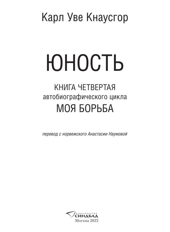 Моя борьба. Книга четвертая. Юность / Карл Уве Кнаусгор ; [пер. с норв. А. Наумова]. — М.: Синдбад, 2022.