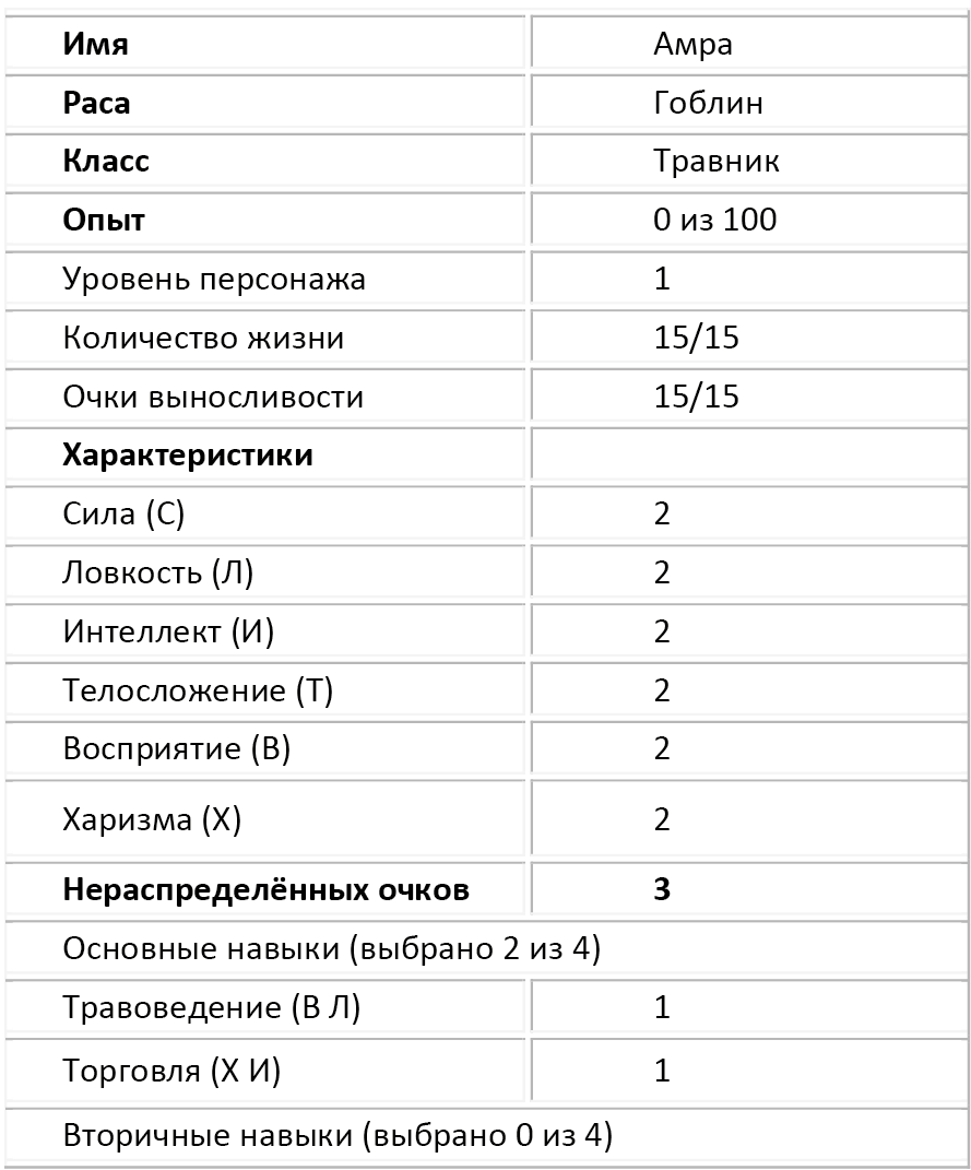 Прежде всего, требовалось разобраться с бонусами и штрафами расы гоблинов. К сожалению, насчёт штрафов Лесовик Переросток не соврал: