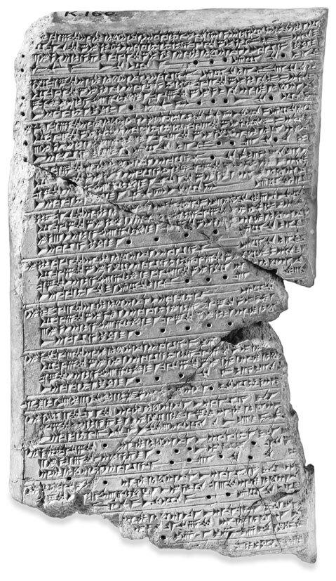 Ил. 3. Клинописная табличка, начертанная в Ниневии в седьмом веке до н. э. На ней записаны наблюдения за положением планеты Венера, сделанные за тысячу лет до этого, во время правления Амми-цадуки (Британский музей).