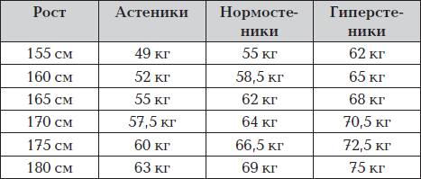 Таблица эталонного веса