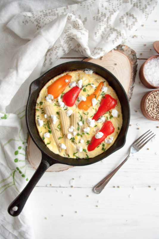 4. Готовим омлет, накрыв крышкой, примерно 15—20 минут, до готовности яиц.