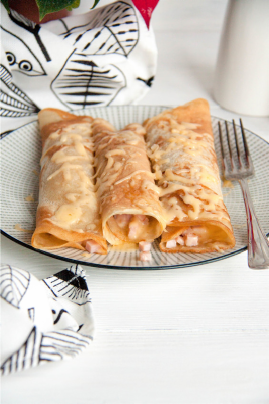 2. Начинку выкладываем на готовый блин и скручиваем в рулет.