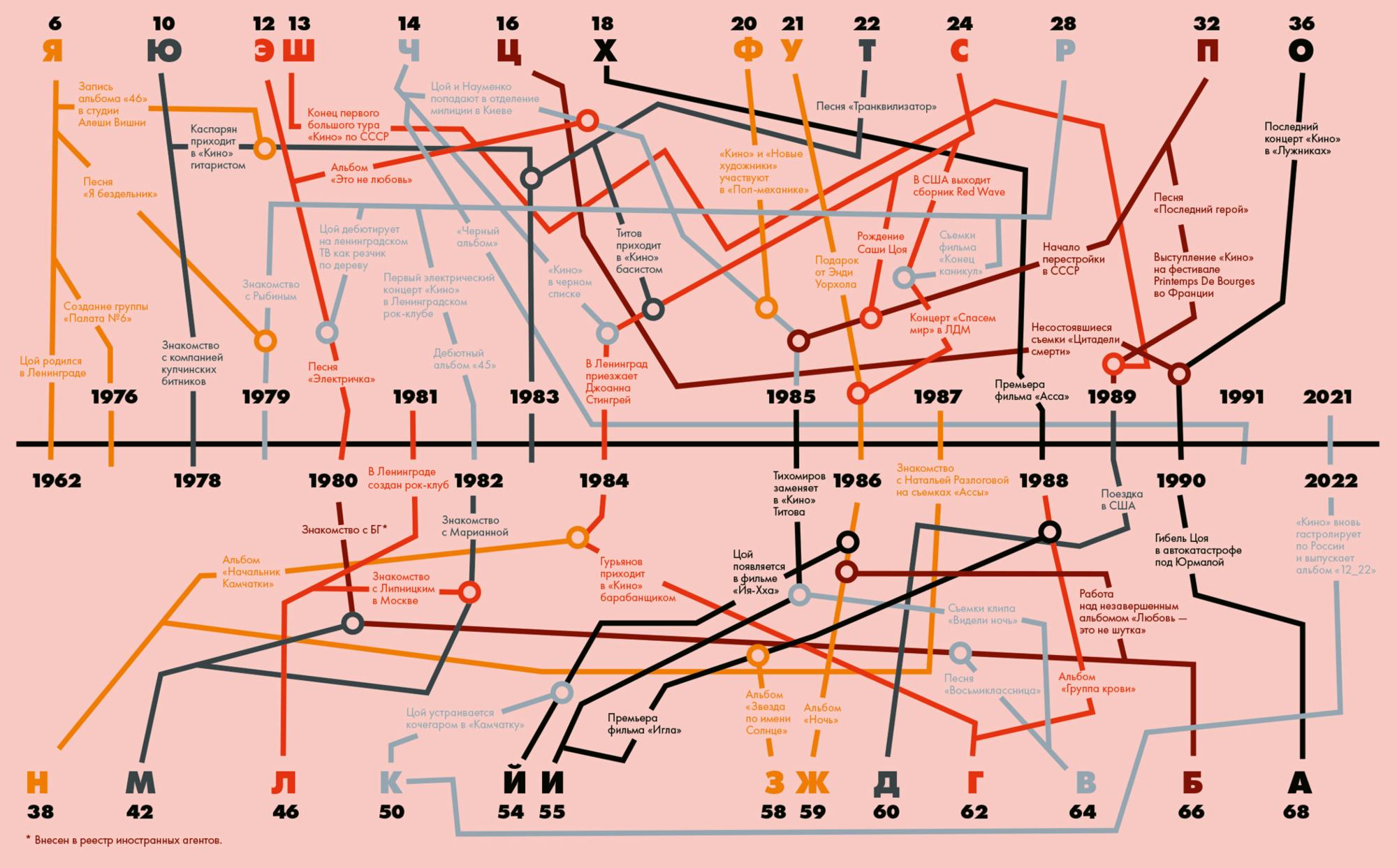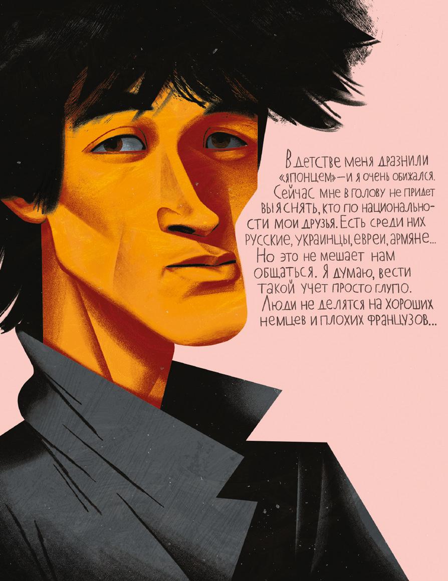 Эта книга — графическая энциклопедия, где история Виктора Цоя, группы «Кино» и бурной эпохи, в которую они появились, представлена лаконично и наглядно. Цой всегда все делал по-своему, потому и энциклопедия не совсем обычная. Словарные статьи в ней идут от конца алфавита к началу, а некоторые буквы пропущены. Картинки не всегда прямо иллюстрируют тексты, нередко скрывая загадки и сюрпризы. Чтобы разгадать и обнаружить их, нужно погрузиться в музыку «Кино» — для этого в конце книги собраны плейлисты. Мы надеемся, что история Виктора Цоя, рассказанная таким образом, покажется захватывающей и вдохновляющей и детям, и их родителям.