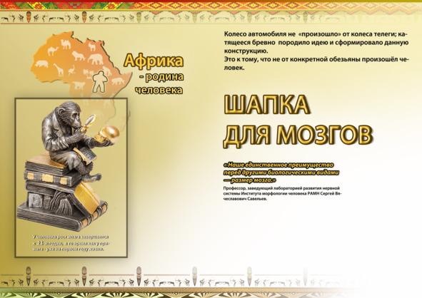 Колесо автомобиля не «произошло» от колеса телеги, катящееся бревно породило идею и сформировало данную конструкцию. Это к тому, что не от конкретной обезьяны произошёл человек. «Наше единственное преимущество перед другими биологическими видами — размер мозга». Так считает профессор, заведующий лабораторией развития нервной системы Института морфологии человека РАМН Сергей Вячеславович Савельев.