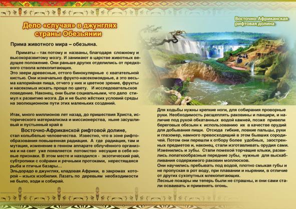 Итак, много миллионов лет назад, до пришествия Христа, исторического материализма, и миссионерства, ныне засушливый и пустынный край в Восточно-Африканской рифтовой долине стал колыбелью человечества. Известно, что в зоне рифтообразования повышенная радиация. А где радиация, там и мутация, изменение в генном аппарате облучённого организма и на свет уже появляется потомство несущие в себе новые признаки. В этом месте и находился — экзотический рай, субтропики с озёрами и речными протоками, нерестящаяся рыба и птичьи базары… Эльдорадо в джунглях, кладовая Африки, в закромах которой — изыск изобилия. Лазать по деревьям необходимости не было, ходи и собирай. Для ходьбы нужны крепкие ноги, для собирания проворные руки. Необходимость расщеплять раковины и панцири и наличие под рукой обкатанных водой камней, позже привели береговых обезьян к использованию их в качестве орудий для добывания пищи. Отсюда гибкие, ловкие пальцы, руки и глазомер, намного превосходящий в этом бывших сородичей. Потом они перешли к отбору более удобных, заостренных предметов и, наконец, стали изготавливать орудия сами. Изменились и зубы. Стали помехой торчащие клыки, развились лопатообразные передние зубы, нужные для выскабливания содержимого раковин моллюсков. Они научились пребывать под водой, плотно смыкая губы и не пропуская в рот воду, при плавании и нырянии, в отличие от других сухопутных млекопитающих.