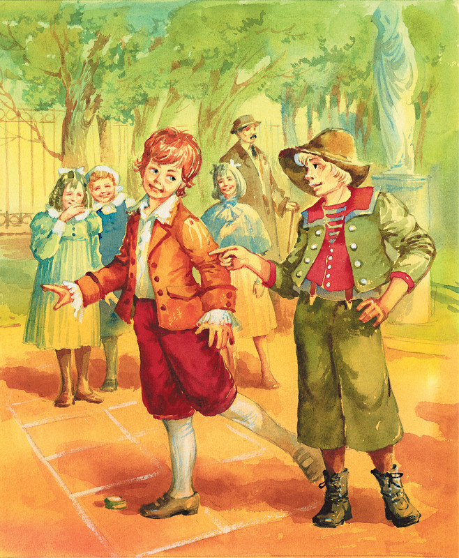 Когда он, как в прошлый раз, играл с девочками в классики, вдруг подходят мальчики и один из них говорит: