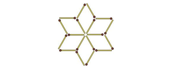 — В фигуре, представленной на рисунке, нужно так переложить 6 спичек с одного места на другое, чтобы образовалась фигура, составленная из 6 одинаковых четырехугольников.