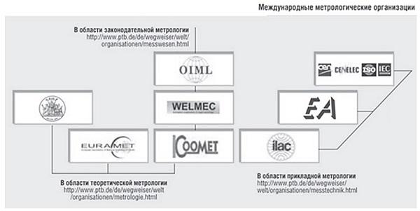 Крупнейшие международные метрологические организации работают в области теоретической и законодательной метрологии, а также занимаются разработкой нормативов измерительной техники и приборостроения, т. е. прикладной метрологией [Ломина, 2008] (рис. 2).