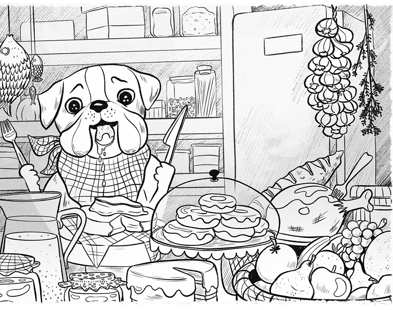 – Да тут и глаз не сомкнёшь! Пойду-ка сделаю себе бутерброд! – проворчал пёс. Он слез с кровати и отправился к холодильнику, располагавшемуся тремя этажами ниже.