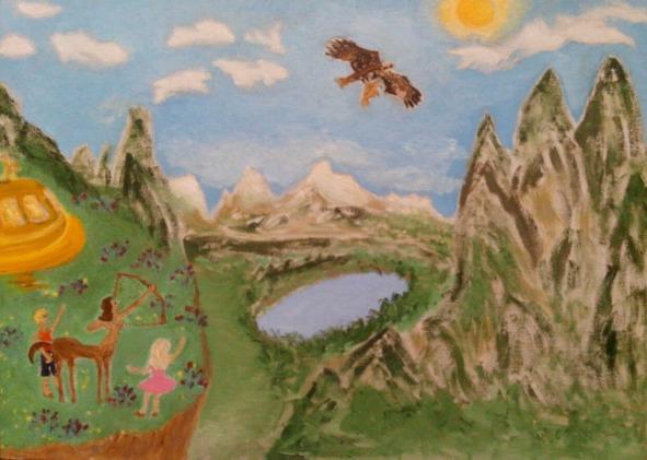 И малыш, быстро опустив корабль на землю, взял в руки рожок и дунул в него, что есть силы. Буквально через пару минут к ним прискакала Синги. Мальчик в двух словах объяснил ей ситуацию. Молодая воительница не заставила долго ждать, она повернулась в сторону улетающего коршуна, быстро натянула лук и выпустила стрелу. Удивительно, но через несколько секунд птица отпустила из когтей зайца, и тот кувырком полетел вниз. Девушка-кентавр молниеносно ускакала в направлении падающего животного.