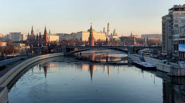 В середине декабря — время долгих ночей и поздних рассветов — около девяти утра солнце только-только лениво выползло на небосвод, окрасив нежно-розовым цветом фасад Большого Кремлевского дворца. В этот момент вид на кремль с пешеходного Патриаршего моста освещается боковым светом, но благодаря низкому утреннему положению солнца контрасты смягчены, нет провалов ни в тенях, ни в светах. Нет ветра, и потому вода зеркалит, но спустя несколько минут ветер появится и отражения растворятся. Легкая дымка городского смога высветляет дали, подчеркивая глубину пространства в кадре.