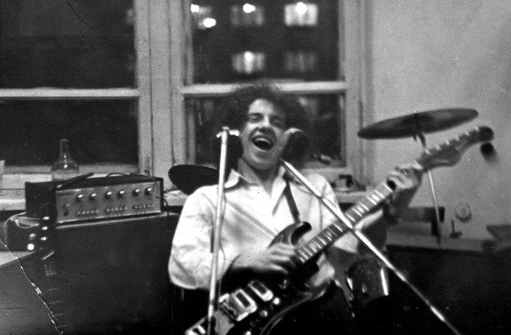 Шахрин в репетиционной комнате «Пятен» в техникуме, 1976