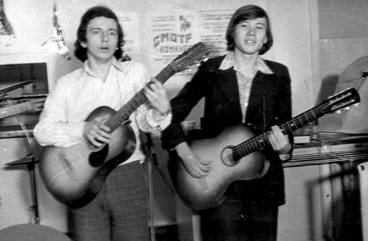 Под воздействием нагрянувшей любви Вова принялся сам выпиливать гитару. Опытным путём он установил, что ДСП не лучший материал для корпуса, а дюралюминий абсолютно не подходит для бриджа – штуковины, на которую крепятся струны. «Я начал проедать плешь родителям, чтобы они мне гитару купили, а гитары тогда добывали, как руду. После длинной переписки родственники с Украины прислали мне роскошную гитару, которую сделали в какой-то дурацкой артели. И сразу, как она попала мне в руки, я организовал группу. Правда, я тогда даже аккордов не знал. Настраивал мне гитару сосед, а я на бумажке зарисовывал положение колков. Так и играл». Жизнь этой гитары оказалась недолгой. Мама поймала сына за курением и в воспитательных целях сломала об него дарёный инструмент.
