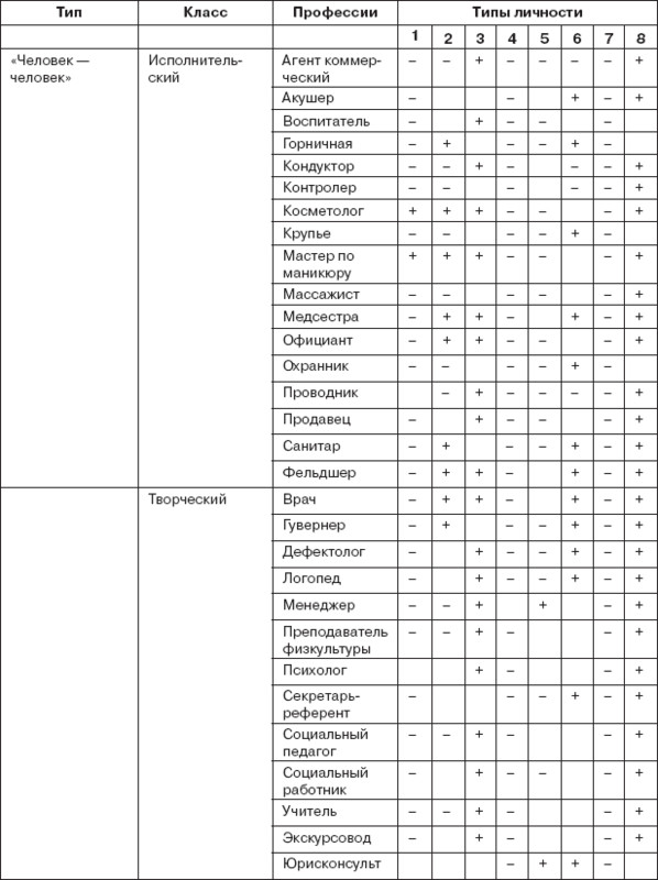 Таблица 2.1. Оценка степени соответствия различных профессий разным типам акцентуации личности
