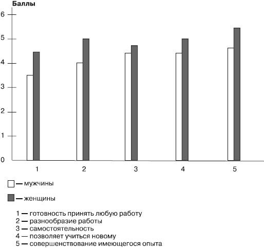 При этом выражается желание найти такую самостоятельную работу, которая позволяла бы учиться новому и совершенствовать имеющийся опыт. Женщины в большей степени были ориентированы на карьерный рост, чем мужчины. Люди в возрасте до 40 лет предъявляют к работе большие требования, чем люди в возрасте после 40 лет. С приближением пенсионного возраста люди начинают считать свою работу более приятной. При этом у мужчин этот эффект проявляется сильнее, чем у женщин.