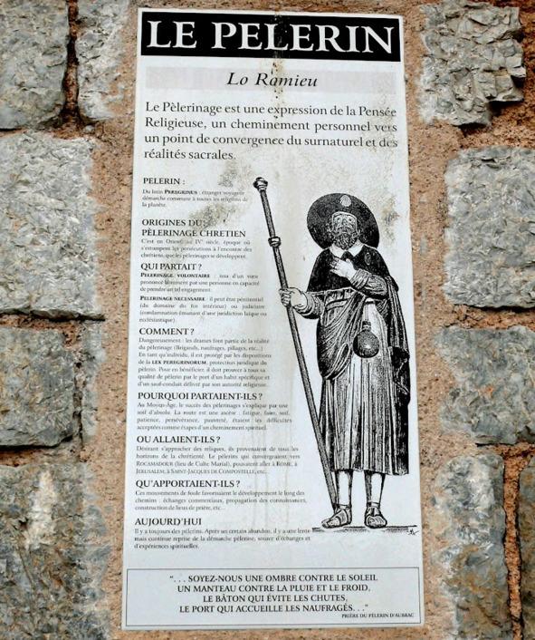 Via Podiensis из Пюи и Конк (и можно заглянуть в очень интересное место Рокамадур = туда тоже зазывают как собственных Рокамадурских, так и Компостельских паломников) [об этом интересном месте со своим собственным паломничеством к «Чёрной мадонне» чуть ниже, но на что сразу стÓит обратить внимание = так это на «вьейру» = компостельскую ракушку на «сомбреро» паломника…].