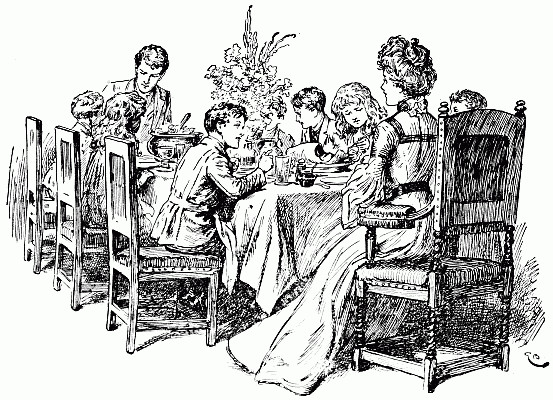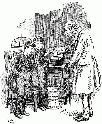 We Bastables have only two uncles, and neither of them, are our own natural-born relatives. One is a great-uncle, and the other is the uncle from his birth of Albert, who used to live next door to us in the Lewisham Road. When we first got to know him (it was over some baked potatoes, and is quite another story) we called him Albert-next-door's-Uncle, and then Albert's uncle for short. But Albert's uncle and my father joined in taking a jolly house in the country, called the Moat House, and we stayed there for our summer holidays; and it was there, through an accident to a pilgrim with peas in his shoes—that's another story too—that we found Albert's uncle's long-lost love; and as she was very old indeed—twenty-six next birthday—and he was ever so much older in the vale of years, he had to get married almost directly, and it was fixed for about Christmas-time. And when our holidays came the whole six of us went down to the Moat House with Father and Albert's uncle. We never had a Christmas in the country before. It was simply ripping. And the long-lost love—her name was Miss Ashleigh, but we were allowed to call her Aunt Margaret even before the wedding made it really legal for us to do so—she and her jolly clergyman brother used to come over, and sometimes we went to the Cedars, where they live, and we had games and charades, and hide-and-seek, and Devil in the Dark, which is a game girls pretend to like, and very few do really, and crackers and a Christmas-tree for the village children, and everything you can jolly well think of.