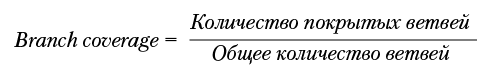 Рис. 1.4. Branch coverage вычисляется как отношение количества ветвей кода, выполненных хотя бы одним тестом, к общему количеству ветвей в коде