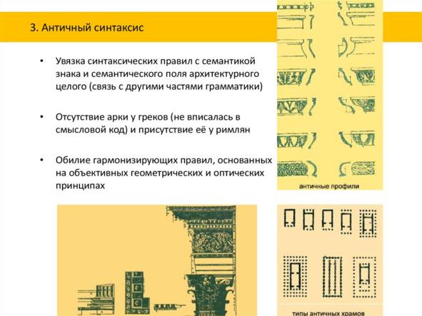 — Элементлар иккиламчи «символик» (рамзий) функцияси: метона, фронтон, колонна (устун) тимпан.
