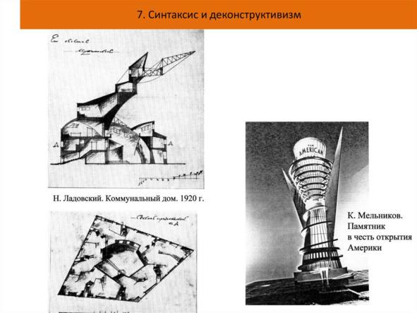 Архитектура формаларига қуйидагилар киради; балка, потолок, перекрития, консол, арка, пилястра, бетон клеткалар. Бу ерда на функцияга, кутилган фазога, кўрсатма йўқ, бунда фақат структуравий мантиқ келгуси шарт-шароит фазо детонацияси бор.