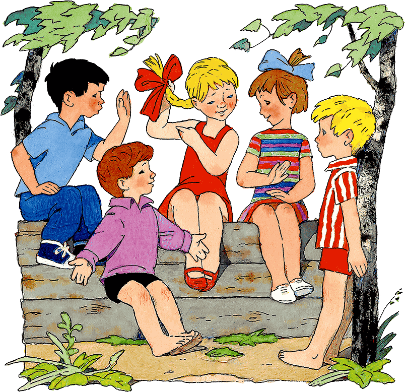 Ребята сидели на брёвнышках под берёзами и разговаривали.