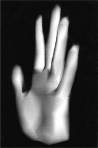 Нарисовав на своей модели треугольники и многоугольники, я измерил координаты каждого из углов, а затем ввел эти данные в написанную мной программу 3D-анимации. Это позволило изобразить огромное количество треугольников и многоугольников, формировавших мою виртуальную руку на мониторе. В первой инкарнации программы в местах соединения многоугольников были видны острые углы. Однако позднее, благодаря технологии плавного затенения, разработанной еще одним из наших коллег и помогавшей избавиться от лишних углов, рука стала более похожа на настоящую. Однако реальная проблема состояла в том, чтобы заставить ее двигаться.