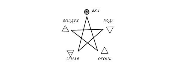 Обычно Дух игнорируют, в силу малой пригодности для практической работы, но в картах Таро он будет важен, как и тот факт, что все Стихии, включая Дух, связаны с вершинами пентаграммы. Порядок следования Стихий по часовой стрелке от Воздуха к Земле еще не раз встретится.