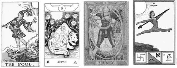 Нет единого рисунка для Старших Арканов, хотя самыми «классическими» можно назвать рисунки Марсельского Таро. Каждый автор рисует карты по-своему, кто-то слегка меняет и стилизует уже привычные сюжеты (обычно такому клонированию подвергается Таро Уайта), кто-то полностью создает собственный, уникальный, рисунок. Дурак обычно — это юноша идущий по краю пропасти; но в Таро Золотой Зари Дурак — это младенец в волком, в Таро Тота и Таро Церемониальной магии Дурак висит в воздухе.