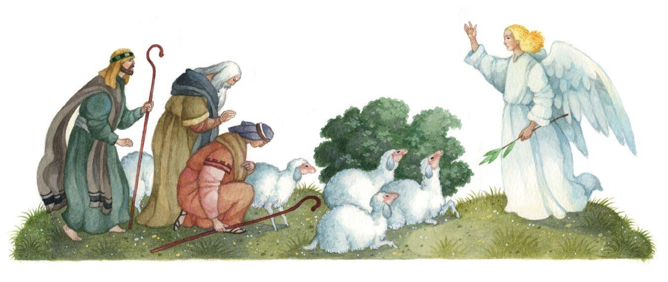 В ночь рождения Спасителя вифлеемских пастухов вдруг озарил яркий свет, им явился Ангел Божий. Пастухи испугались, увидев славу небесную, но Ангел сказал им: