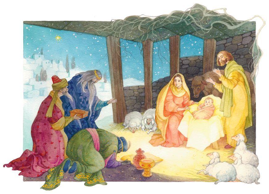 Волхвы отправились в Вифлеем. Дорогой они увидели, что звезда идёт перед ними, указывая путь. Они последовали за ней и шли до тех пор, пока звезда не остановилась над тем местом, где был Иисус. Они вошли в дом и увидели Младенца с Его Матерью Марией. И хотя всё, что окружало Иисуса, было бедно, они поклонились Ему как Царю и подали Ему драгоценные дары: золото, ладан и смирну.