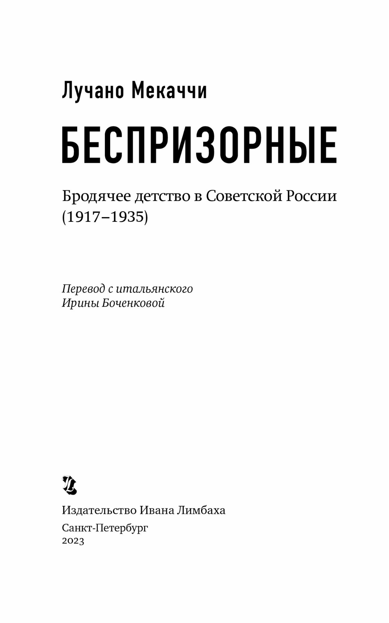2 Явление называется «беспризорность» (или «беспризорщина», как у Владимира Маяковского). Различают понятия «безнадзорный», то есть ребенок, за развитием и воспитанием которого отсутствует должный контроль со стороны родителей и/или социальных институтов, но который имеет место жительства или временного пребывания, и «беспризорный», то есть ребенок без постоянного местожительства. Другие выражения, используемые в этой связи: «бездомные дети», «уличные дети» или «дети улицы», «заброшенные дети». Также необходимо упомянуть термин «шпана» (хулиган), которым часто обозначали беспризорного в двадцатые и тридцатые годы. Например, «Шпана» — так называется в русском переводе сборник новелл Пьер Паоло Пазолини, герои которых — римские подростки из бедных районов. Интересно отметить, что в романе «Мастер и Маргарита» Михаила Булгакова (работа над романом была начала в 1928–1929 гг. и продолжалась вплоть до смерти писателя в 1940 г., а первое полное издание вышло в 1967 г.) один из главных героев, поэт Иван Бездомный (настоящее имя — Иван Николаевич Понырёв), в ранней редакции 1931 г. имел псевдоним Беспризорный (см.: Белобровцева И. З., Кульюс С. К. Роман Булгакова «Мастер и Маргарита». Комментарий. М.: Книжный клуб, 2007. С. 151). В работах итальянских журналистов, писателей и историков начала XX в. использовались разные варианты: беспризорные (Беппе Фенольо, например, в романе «Партизан Джонни» так описывает членов банды Мути: «…совсем зеленые, несчастные беспризорные, выброшенные на улицу из проклятых сиротских приютов», см.: Fenoglio B. Romanzi e racconti / A cura di Dante Isella. Torino: Einaudi Gallimard, 1992. P. 562) и беспризорники (Индро Монтанелли в статье, опубликованной в 1941 г. в газете «Коррьере делла Сера», см.: Montanelli I. I besprizorniki // Corriere della sera, 8 luglio 1941). О заимствовании из русского языка термина «беспризорные» см.: Bruni A. Sul russismo «besprizorni». Un forestierismo sintomatico di Beppe Fenoglio // Lingua nostra. 1995, № 56. P. 56–62; Fanfani M. Per la storia d’una voce scomparsa [besprizorni] // Ibid. P. 62–86.